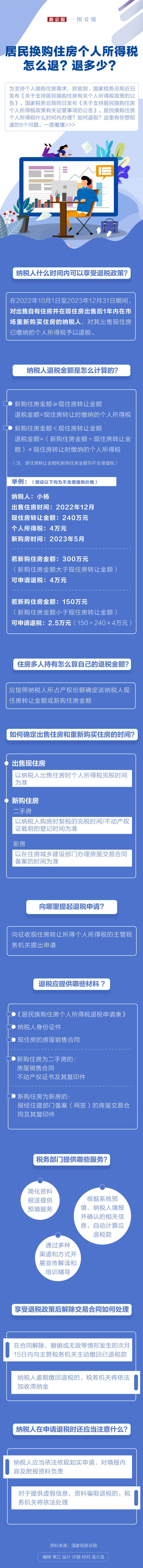 居民换购住房个人所得税什么时间内办理?如何退税?这里有你想知道的9个问题。一图看懂>>> 100 +1 微博 微信 我要评论 登录 相关推荐 上海:符合条件购房人购买家庭首套住房的,暂免征收房产税 第一看点 6952 广州全面取消住房限购,非户籍居民家庭不再审核购房资格 地产早一步 4.7万 湖南长沙:居民家庭购买首套商品住房 不再需要提供购房证明 第一看点 9672 直播 预告 315晚会实时解读:如何提升消费品质 2026-03-15 20:00 热点 1 伊朗总统提出结束战争三大必要条件 58.3万 2 洗衣液抽检近四成不达标,衣服洗不干净的原因找到了 18.9万 3 十四届全国人大四次会议举行闭幕会 4.6万 4 宝马集团2025年销量微增,净利润微降 2.6万 5 十四届全国人大四次会议第三场“部长通道”集中采访活动举行 2.4万 最新 赵乐际:在第十四届全国人民代表大会第四次会议上的讲话 5小时前 第十四届全国人民代表大会第四次会议关于国民经济和社会发展第十五个五年规划纲要的决议 6小时前 中信证券、国泰君安港股子公司员工遭调查?香港证监会发文揭晓原因 6小时前 年轻人研究所妇女节特辑 | 她们不被标签定义,自成万丈光芒 6小时前 “养龙虾”引爆Token消耗量,谁能吃到AI智能体投资第一口肉? 6小时前 热议 洗衣液抽检近四成不达标,衣服洗不干净的原因找到了 新闻8点见丨十四届全国人大四次会议今日闭幕 中信证券、国泰君安港股子公司员工遭调查?香港证监会发文揭晓原因 第十四届全国人民代表大会第四次会议关于国民经济和社会发展第十五个五年规划纲要的决议 赵乐际:在第十四届全国人民代表大会第四次会议上的讲话