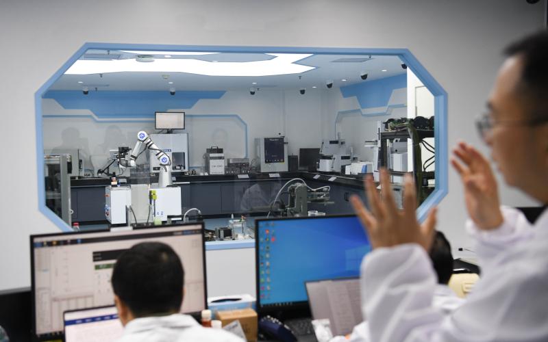 ▲科研团队研制出动的“机器化学家”。图/新华社