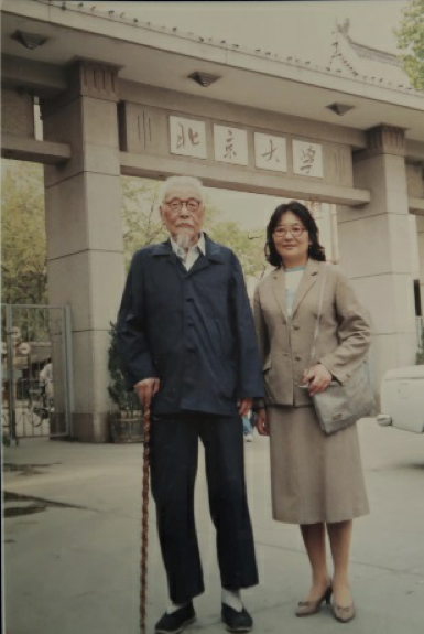上世纪90年代,张玲和父亲张谷若在北京大学南门。