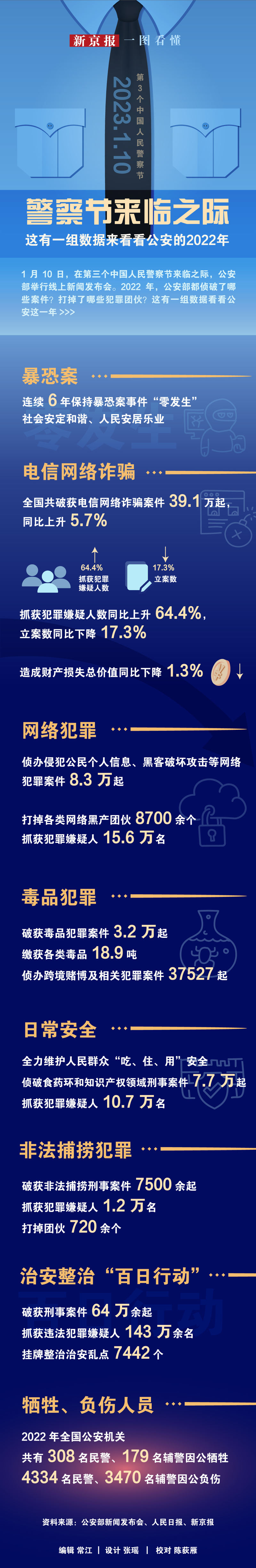 1月10日,在第三个中国人民警察节来临之际,公安部举行线上新闻发布会。2022年,公安部都侦破了哪些案件?打掉了哪些犯罪团伙?这有一组数据看看公安这一年>>>