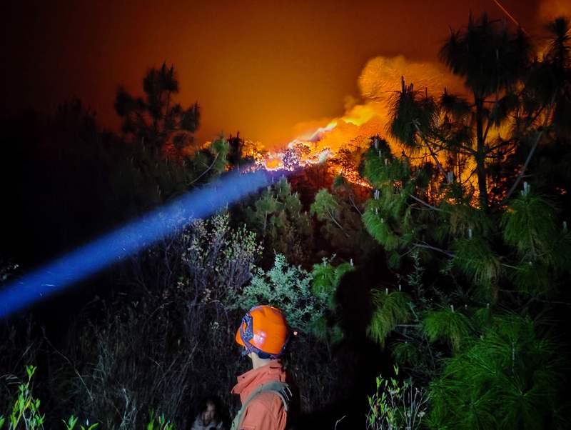4月17日21时30分许,打火队伍利用半山腰的一条简易山路,对火头实施拦截。在火头到来之前,对可燃物进行彻底清理,在两公里多的防线上布防,率先扑灭火场南线明火。随后,清理人员对每一个烟点进行清理,分段把守,确保火线实现“三无”(无火、无烟、无死灰复燃)。