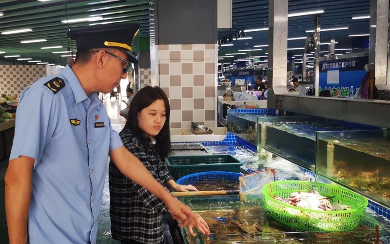 8月25日,海淀区市场监管综合执法大队对辖区物美、超市发、四道口水产品批发市场等商超、市场的食盐、水产品经营主体进行检查,重点了解相关商品近期是否存在缺货或价格波动情况。