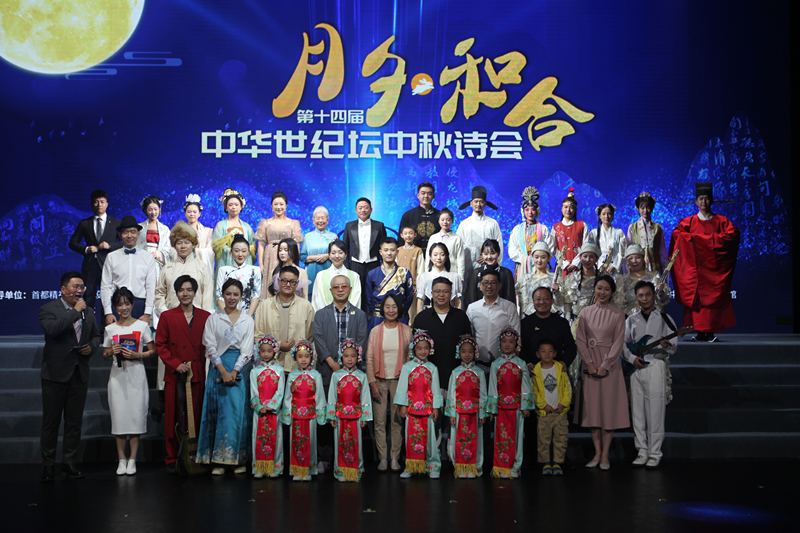 9月28日晚,第十四届中华世纪坛中秋诗会在京举办。这是诗会主创团队和演员合影。主办方供图