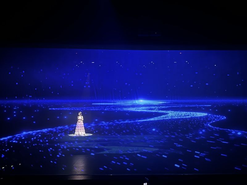 值得提到的是,第十四届中秋诗会采用了“展演联动”的创新模式,不仅演出当中有汉服秀表演,而且中秋诗会外场打造了汉服展览,让观众近距离欣赏来自蒋金锐教授服装设计工作室的精美汉服。现场换装环节更是让对汉服感兴趣的观众穿上喜爱的服饰,体验汉服的古典、含蓄、轻盈、飘逸之美。