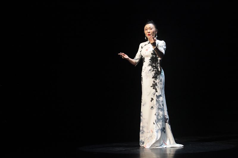 9月28日晚,中华世纪坛中秋诗会现场,陈金玲演唱《越人歌》。主办方供图