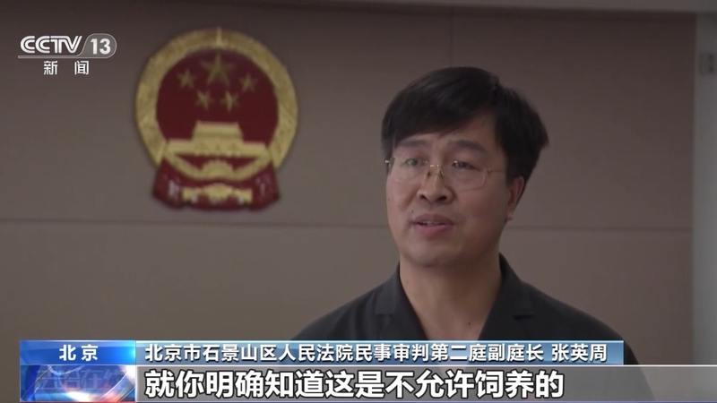 北京市石景山区人民法院民事审判第二庭副庭长 张英周:被告饲养的是一只烈性的德国牧羊犬,就你明确知道这是不允许饲养的,那你在家里还进行饲养。你在饲养的同时,你又没有对它进行有效管理,导致具有危险性比较高的这样一个动物自己出去把人咬伤了。