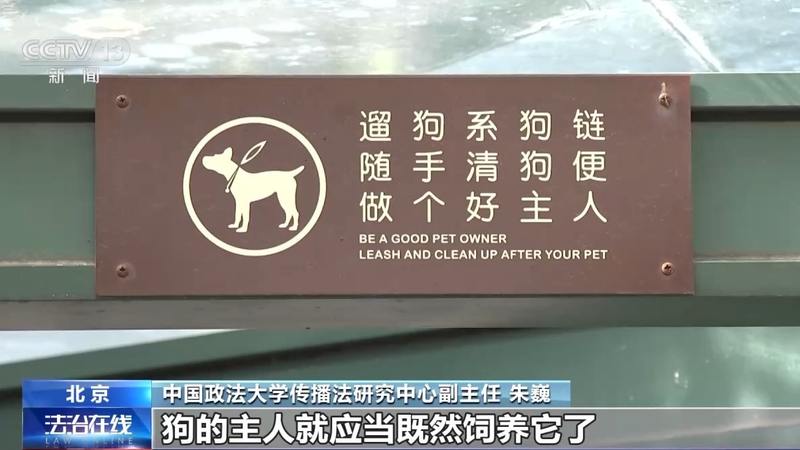 中国政法大学传播法研究中心副主任 朱巍:这个人与狗和谐生活,不能把希望寄托在狗不咬人身上。狗的主人就应当既然饲养它了,你就应该承担所有的相关的责任。民法典有一个特别的规定,如果是遗弃的狗或走失的狗,包括猫在内对别人造成损害了,那么他以前的主人,以前的饲养人,包括现在的管理人也要承担侵权责任的。