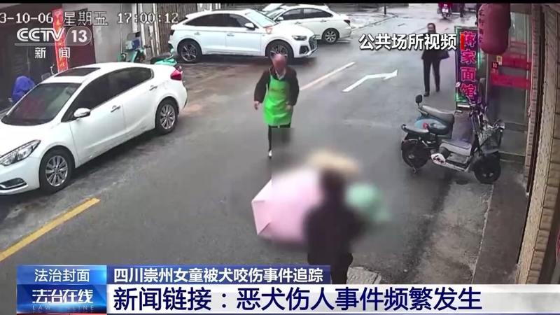 根据公共场所视频显示,10月16日上午8时01分,崇州市某小区内,一黑一白两只狗出现在画面中并相互追逐,没有牵狗绳,旁边也无人看管。8时02分左右,一位女士带着自家2岁多的女儿走出楼道单元门,此时黑色狗发现有人出现并向母女二人靠近,在毫无征兆的情况下向女童发起攻击。女童母亲挡在身前试图进行驱赶,在此过程中不慎摔倒,黑色狗扑向了女童并持续撕咬。