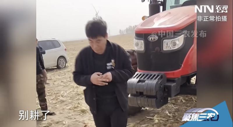 双胜村一村干部出现在承包地现场,阻止村民耕作。“中国三农发布”视频截图