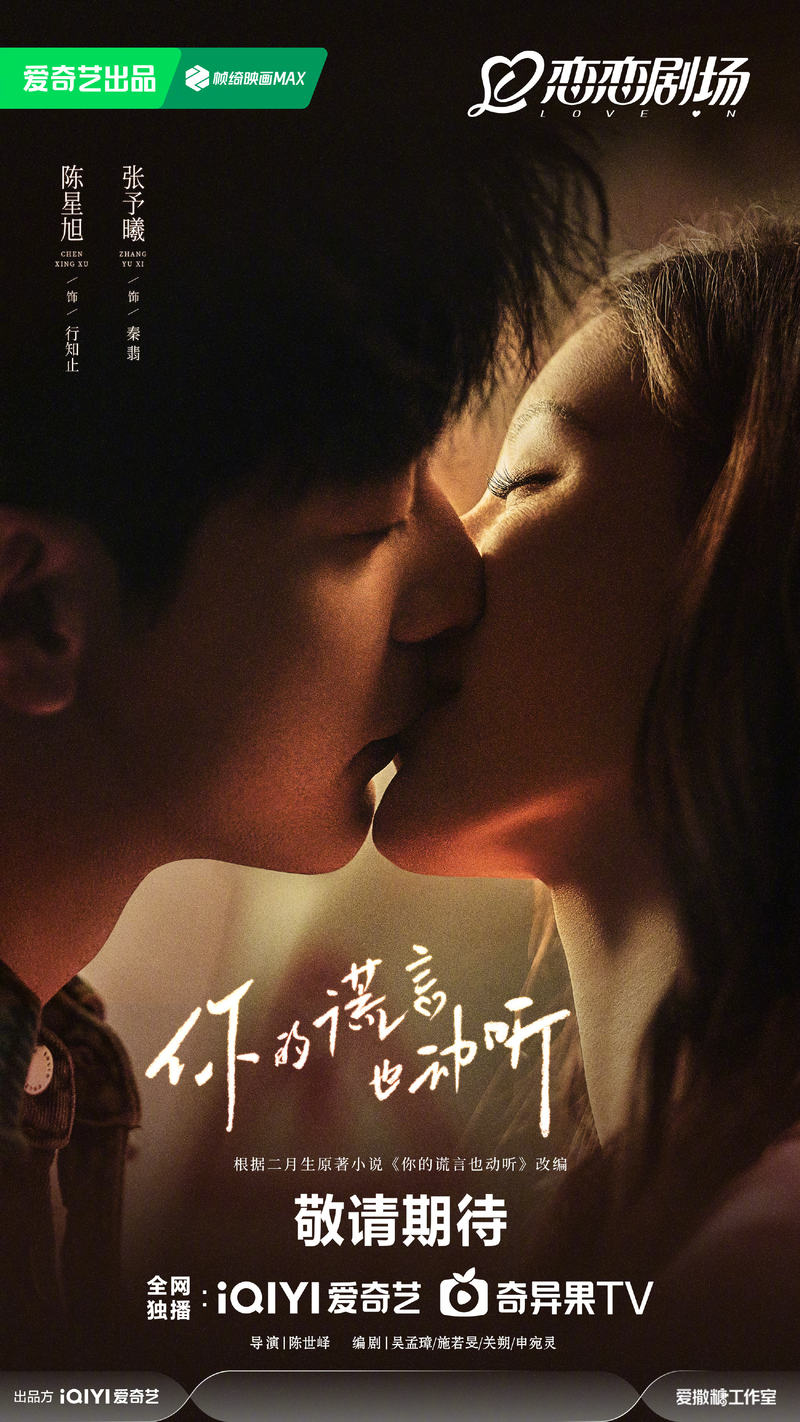 新京报讯 5月21日,陈星旭、张予曦主演的网剧《你的谎言也动听》发布“一吻沦陷”海报。该剧根据二月生的同名小说改编,主要讲述了志愿者秦翡(张予曦饰)与医疗队队长行知止(陈星旭饰)在事业上各自努力,在生活上相互扶持的故事。