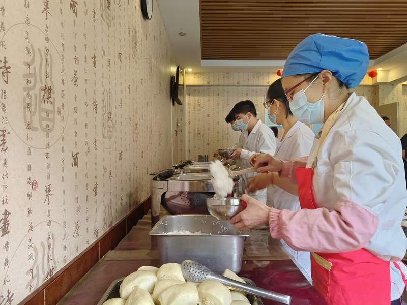 北京仙栖谷精神障碍托养中心餐厅,工作人员正在为学员备餐。 新京报记者 叶红梅 摄