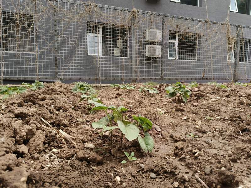 北京仙栖谷精神障碍托养中心菜地里种着小葱、豆角等各类蔬菜,学员可在此种菜、摘果,有助于康复。 新京报记者 叶红梅 摄
