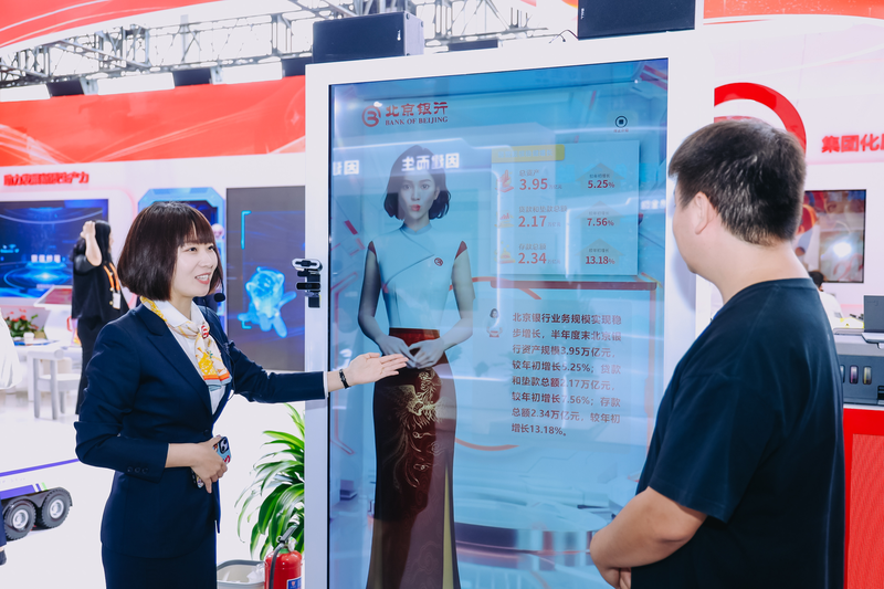 在2024服贸会现场,北京银行AI数字员工“京京”与现场观众互动。