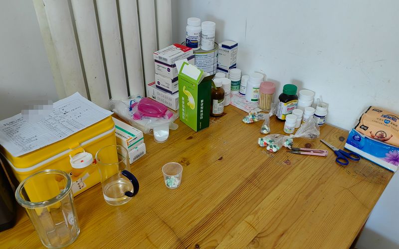 天晴儿子每天要分7次吃20多种药。新京报记者 刘思维 摄