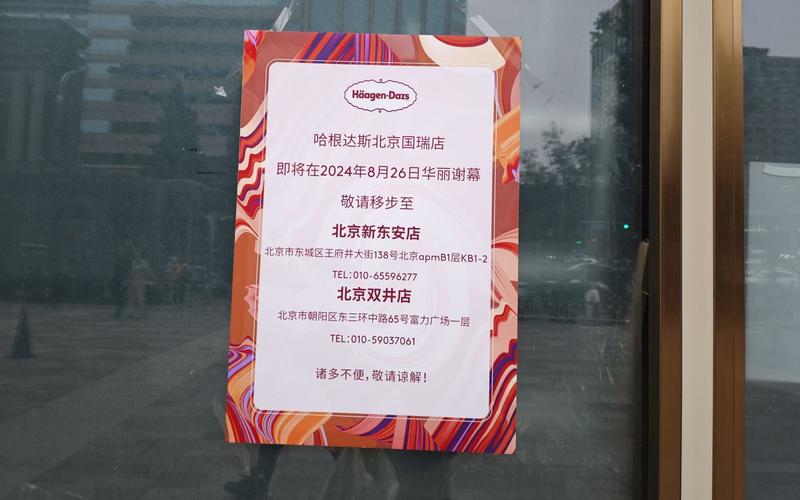 2024年8月,哈根达斯北京国瑞店贴出关店告示。新京报首席记者 郭铁 摄