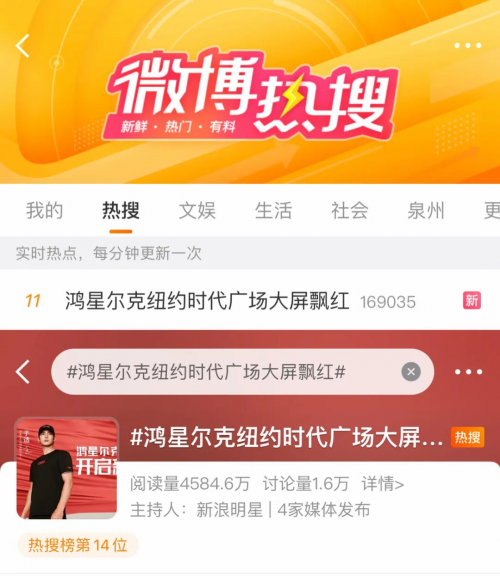 几乎同一时间,“鸿星尔克纽约时代广场大屏飘红”的话题也冲上国内微博热搜。于适化身“To Be No.1”全网第一人,国民级运动品牌配上宝藏级新锐青年,让不少网友直呼这波操作简直“内行”。而这份看似简单的联动背后,实则也是中国品牌从“制造”到“智造”、从“国货”到“国潮”转型的缩影。