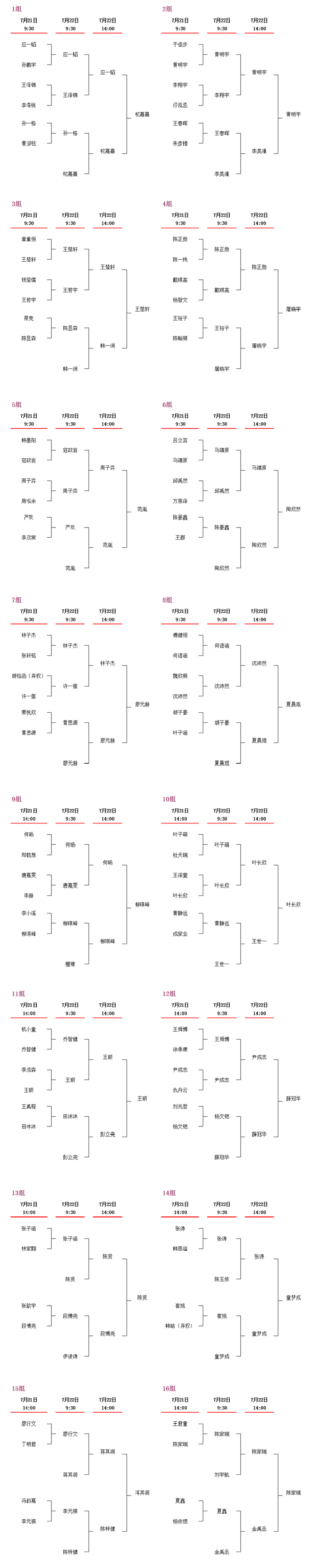 预选赛后举行了本赛抽签仪式,本赛第一轮将于7月23日打响。