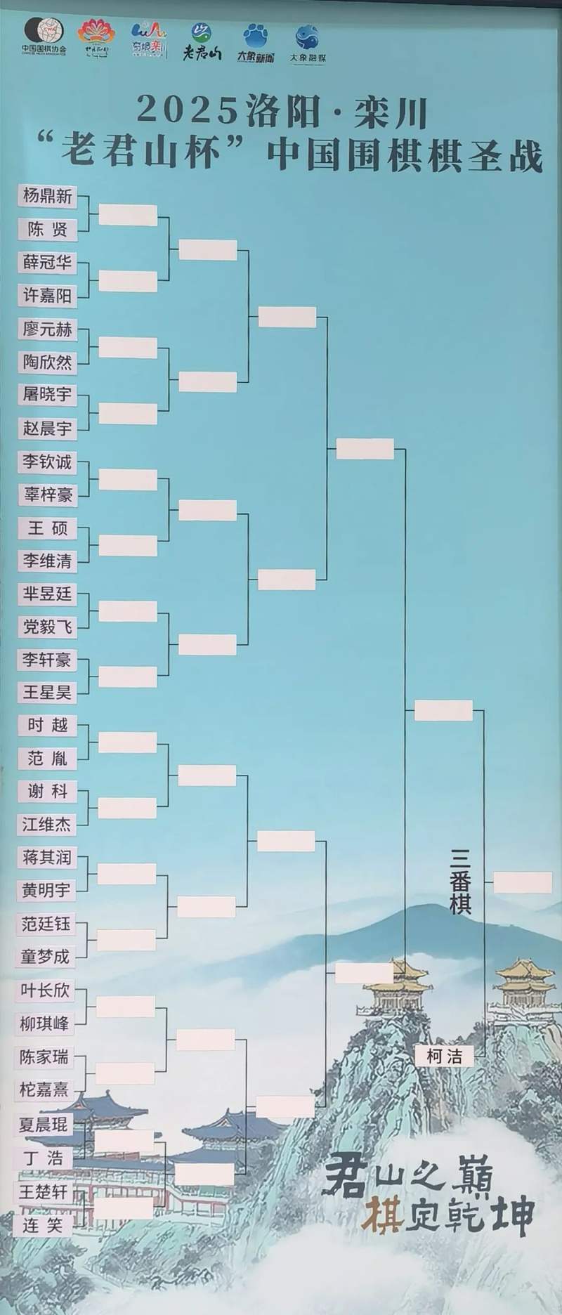 7月22日,为期两天的2025第六届洛阳·栾川“老君山杯”中国围棋棋圣战预选赛在北京中国棋院结束。柁嘉熹九段、陶欣然九段、廖元赫九段、屠晓宇九段、夏晨琨八段、童梦成八段、陈贤八段、范胤八段、蒋其润八段、薛冠华八段、黄明宇八段、王楚轩七段、叶长欣七段、柳琪峰六段、王硕五段、陈家瑞五段16人晋级。陈家瑞生于2010年,为本赛32强中年龄最小的棋手。