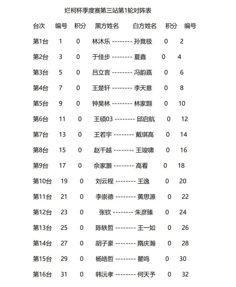 对阵表见下: