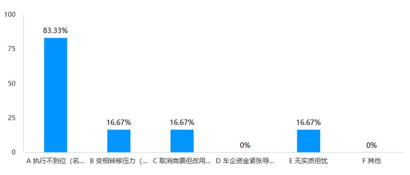 对于执行的持续性,调查显示供应商信心略有不足:50%的企业认为“短期可行”,33.33%表示“存疑”,16.67%认为“大概率难持续”。他们最大的担忧集中于“执行不到位”,担心“60天账期”在实际操作中被各种手段拖延。