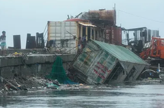 11月4日,台风“海鸥”登陆菲律宾,给多地区出现大面积洪水。画面显示街道洪水汹涌,集装箱和车辆被冲走。受洪水袭击后当地基础设施受严重破坏,多所房屋沦为废墟。多名民众在洪水中拾捡生活物品。报道称目前台风“海鸥”已致当地66人死亡,受灾人口超过70万。