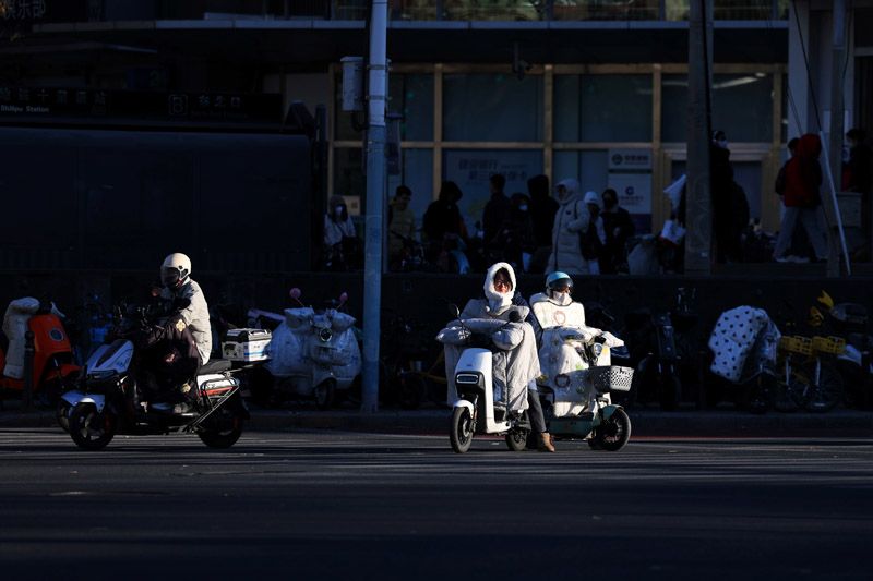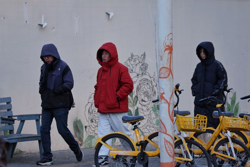 12月2日,十里堡路,市民在寒风中出行。北京市气象台2日9时发布,今天白天晴,偏北风三四级(阵风六七级),最高气温-1℃;夜间晴,偏北风三级(阵风五级左右)转一二级,最低气温-9℃。今天气温低迷,寒潮蓝色大风蓝色预警中,大家出行注意防风防寒。