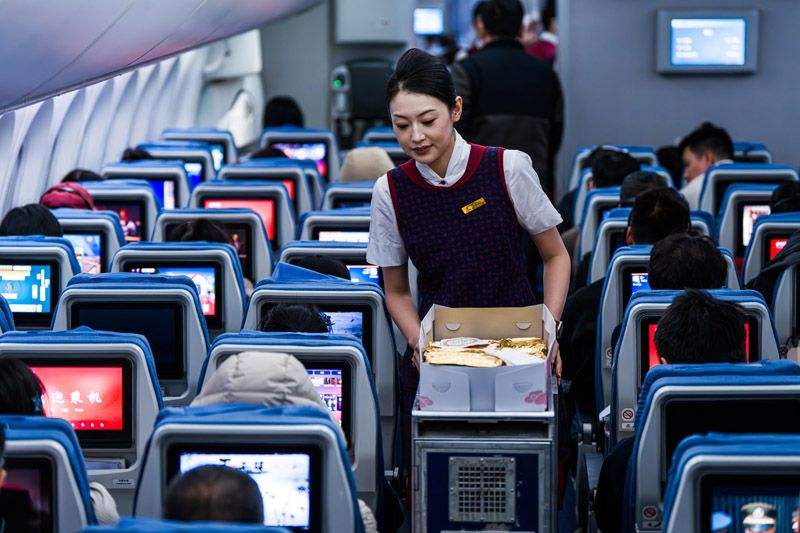 2月11日凌晨4:30,北京首都国际机场,天幕仍缀满寒星。空勤人员拖着飞行箱走进客舱服务部开航前准备会。