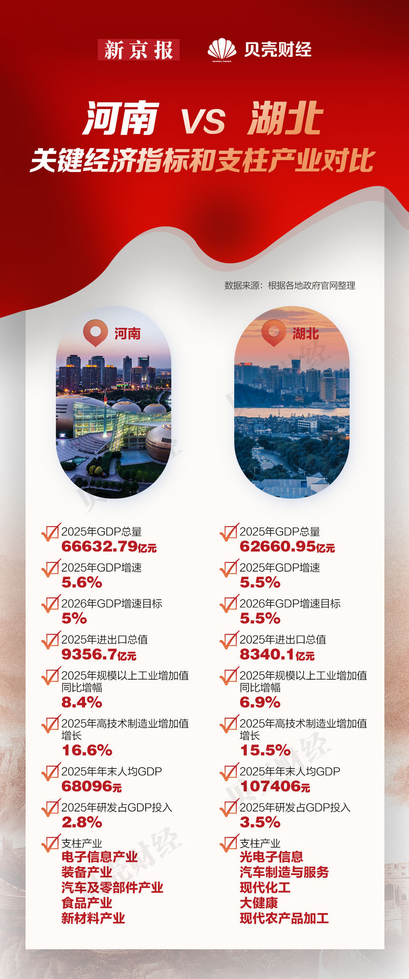 而湖北省也将2026年GDP增长目标定为5.5%,高于河南省5%的增速目标,由此可见其追赶决心。