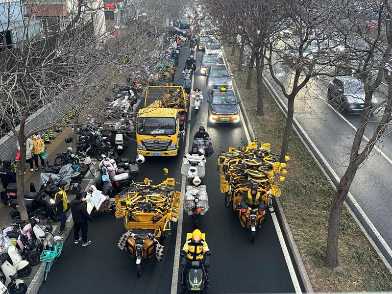 今晨7点,玉泉路地铁站外,多辆共享单车调度车正在紧张作业。作为周边出行的重要承接站,这里的车辆流转速度明显加快,工作人员全力保障早高峰运转有序。千龙网记者 徐锟 摄