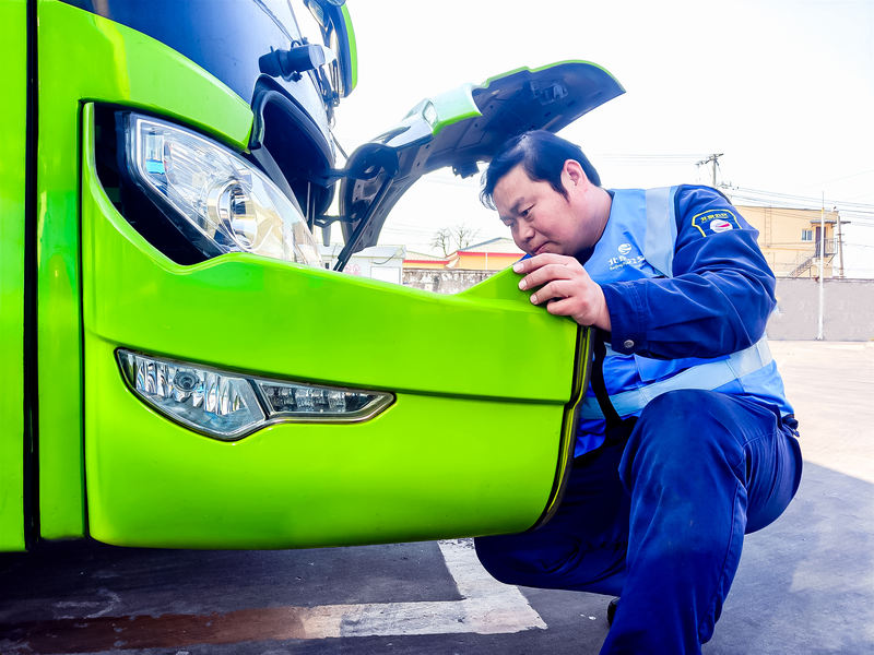 北京公交集团保修分公司工作人员检修车辆。受访者供图