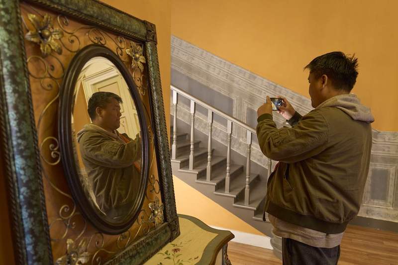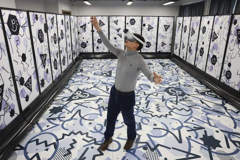 3月15日,北京邮电大学计算机中心VR大空间实验室。郑康乐重复检查VR项目的内容。