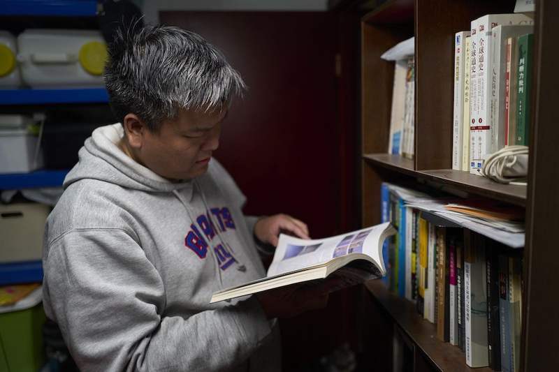 陈建在翻阅电影特效书籍。他认为即便是AI 时代,传统影视的基础知识也非常重要。