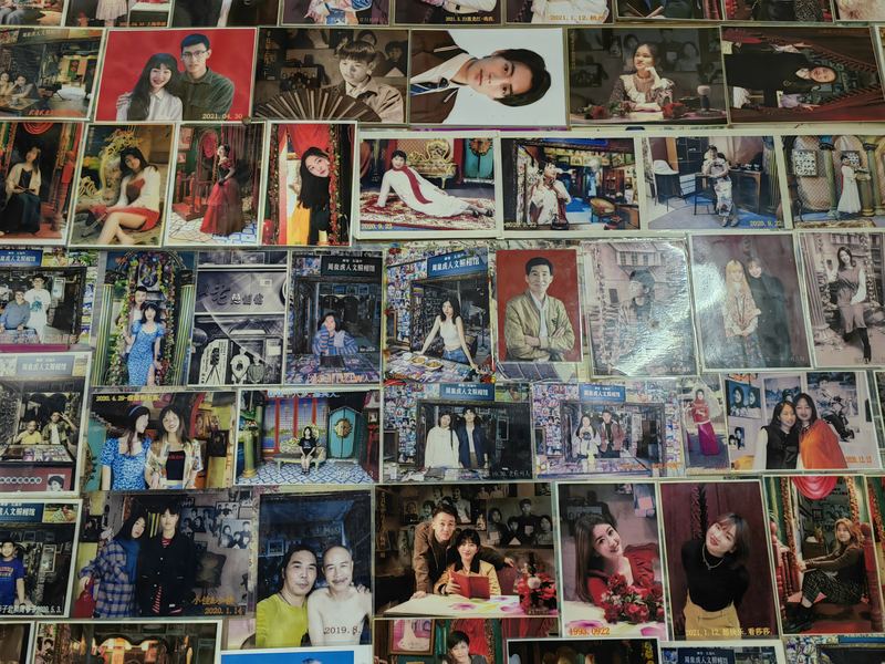 照相馆“翻红”后,生意几乎和巅峰时一样好,“1小时能赚100块。”他把那些新拍的照片贴在大门和外墙——屋里的墙上已经没有空间了,正中间最显眼的位置是一名港星,不少人冲着自己的照片也可以跟明星一样“上墙”而来。