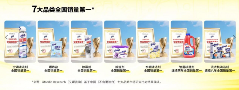 老管家品牌创立于2013年,集研发、生产、销售于一体,以“洁净每个中国家庭”为愿景。十余年间,老管家从洗衣机清洁剂这一细分品类切入,逐步构建起覆盖七大核心品类的产品矩阵。截至2025年7月,老管家爆炸盐、除霉剂、除湿剂、管道疏通剂、空调清洗剂、水垢清洁剂、洗衣机清洁剂七大品类均取得全国销量第一的卓越成绩,彰显家清市场领导地位。