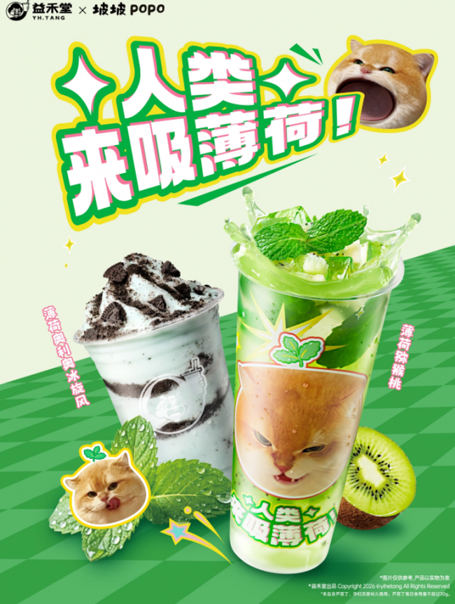 当经典的清爽滋味遇上顶流的萌趣表达,益禾堂在这个春天成功将产品创新与情感共鸣融为一体,通过薄荷系列饮品带来的“上头”体验,精准击中年轻消费者的春日情绪。