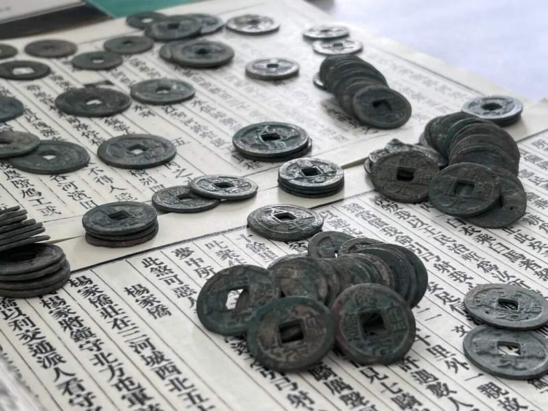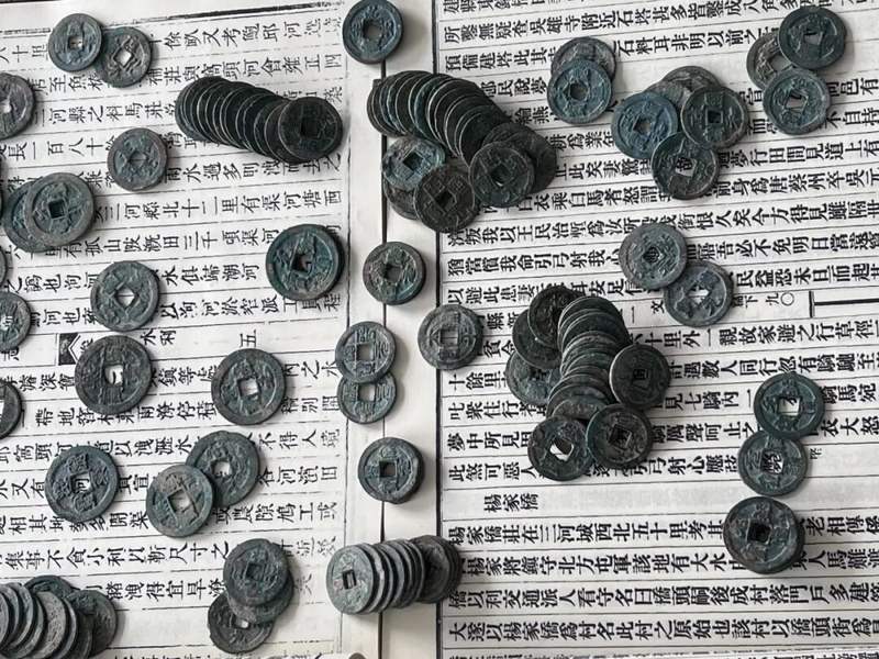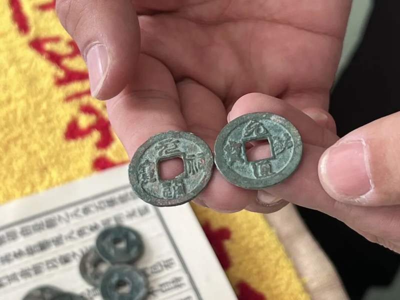 记者看到,这批古钱币大小不一,表面覆有绿锈包浆,品类丰富、年代清晰。其中包括汉代“五铢钱”、唐代“开元通宝”、北宋“元祐通宝”等20余种可辨识钱币,年代脉络横跨千年。每一枚钱币,都承载着古人的智慧与生活,也映照着历史长河的变迁。