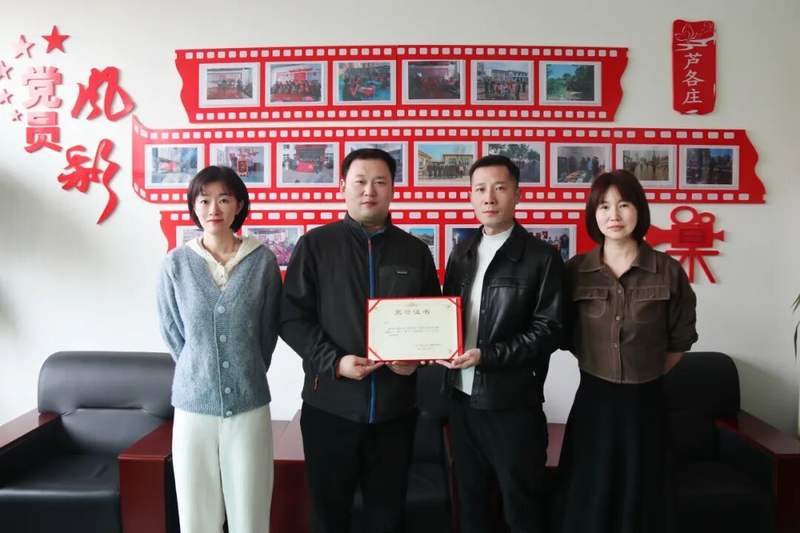 区文物所向郭男(左二)颁发荣誉证书。