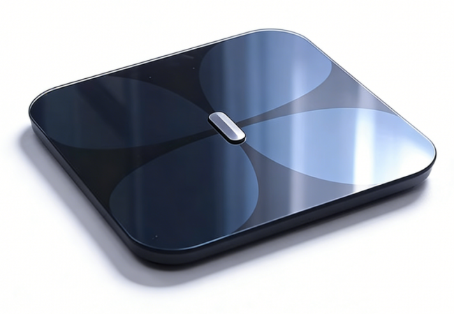 产品规格与价格:最大承重250kg,分度值0.01kg,采用8个家用专业级传感器,测量精度极高。机身尺寸35×35cm,采用航空级钢化玻璃面板,搭配防滑减震垫,稳定性强,机身厚度约11mm,净重约2.2kg。支持无线快充+太阳能辅助供电,具备IPX7防水能力,清洁方便,参考价格369元。