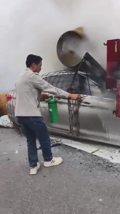 除手部烧伤外,李立东的头发也被烧焦了一层。