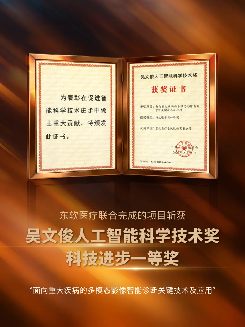 近日,中国人工智能学会正式公布2025年度吴文俊人工智能科学技术奖获奖名单。由东北大学牵头,联合东软医疗、东软智睿、北京科技大学、中国医科大学附属第一医院、中国医科大学附属盛京医院、辽宁省金秋医院等单位共同完成的“面向重大疾病的多模态影像智能诊断关键技术及应用”项目,凭借突出的技术创新与重大应用价值,荣获科技进步一等奖。