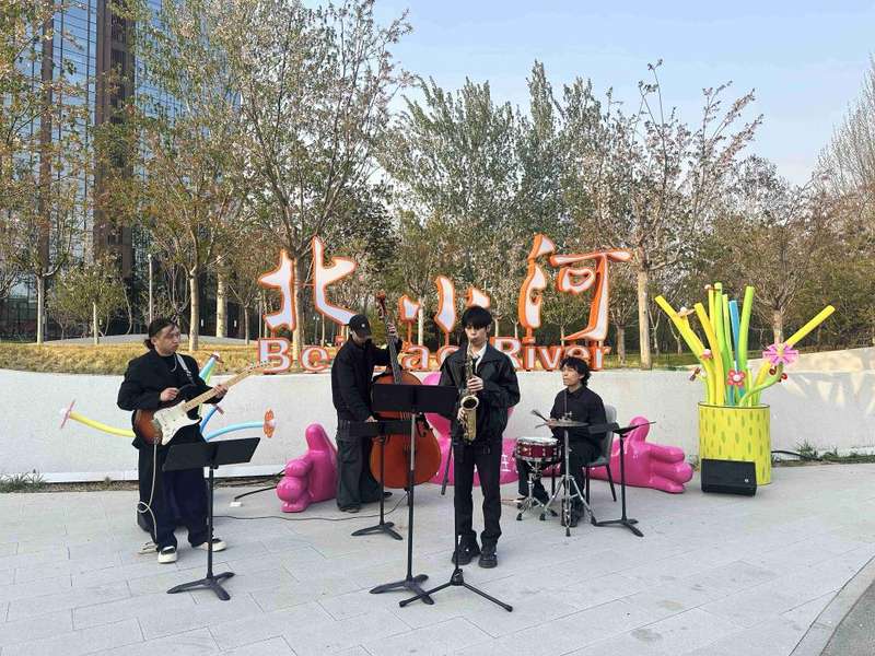 北京北小河岸边的音乐演出。新华社记者 杨淑君 摄