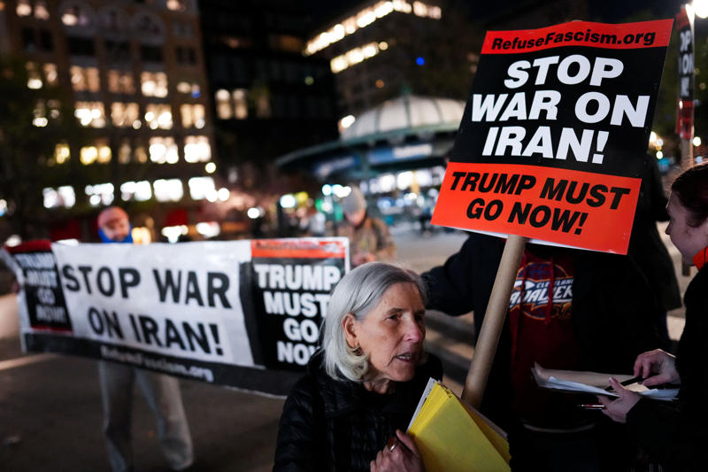 当地时间2026年4月7日,美国纽约,美国总统特朗普同意与伊朗停火两周,民众聚集举行反战集会,抗议美以军事打击伊朗。图/IC photo
