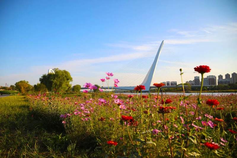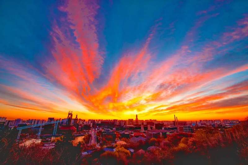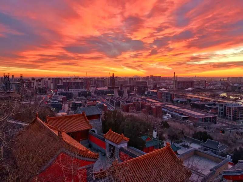春花烂漫时,我们拍过山桃如云似霞,也记录过工业遗存与春意的奇妙交融。夏日晚霞里,漫天流光成为忙碌生活中最慷慨的馈赠。秋日初寒,红叶如火、银杏染金,石景山留住了最后一抹温柔。冬日暖阳下,永定河的冰面被朝阳晕染成碎钻般的金黄,晨光穿透寒意;残雪还在枝头停留,晴雪共舞的画面是石景山限定的浪漫。