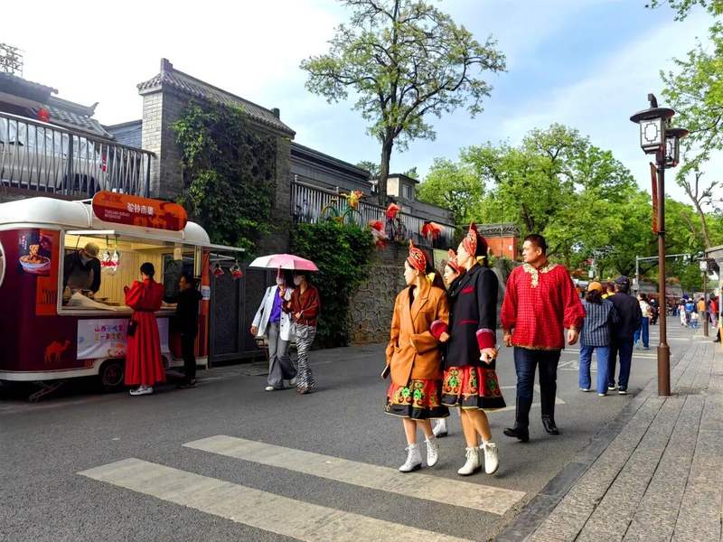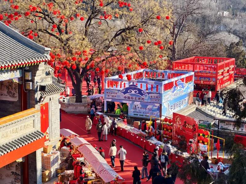八大处红灯映雪,非遗互动、祈福打卡热闹不停,模式口古街年味拉满,非遗市集人潮涌,游乐园冰雪项目嗨玩,首钢园工业风雪景出片,全域年味燃动,每帧都是热闹暖冬。