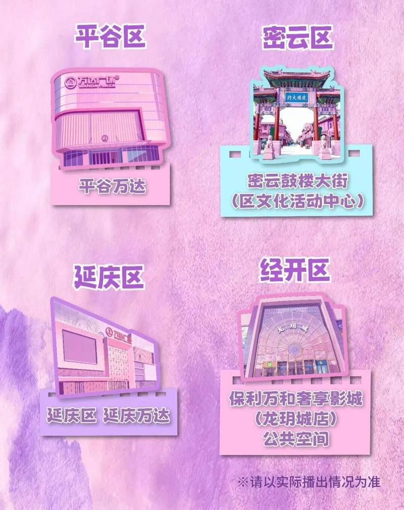 本届北影节首次打造“超现场”,在朝阳区蓝色港湾、中国电影博物馆、通州区万象汇、湾里、隆福寺、郎园Park等全市多个重点商圈的大屏上,直播或播映电影节开闭幕式、红毯、盛典及相关活动。