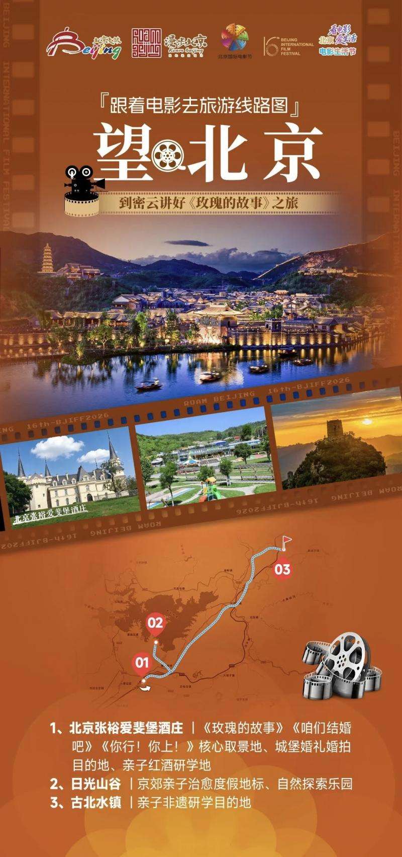 线路解说:这条亲子向光影线路串联京郊密云的三大宝藏目的地,把影视同款打卡与亲子休闲、自然研学、非遗体验完美融合。从张裕爱斐堡的欧式城堡出发,复刻《咱们结婚吧》浪漫名场面,带孩子解锁酿酒研学乐趣;再奔赴日光山谷,在山野绿野间放松身心,玩转各类童趣设施;最终抵达古北水镇,漫步青石板街巷打卡影视同款场景,夜游赏璀璨灯火,登顶司马台长城感受史诗风光,全程兼顾氛围感、趣味性与教育意义,打造专属全家的光影度假记忆。