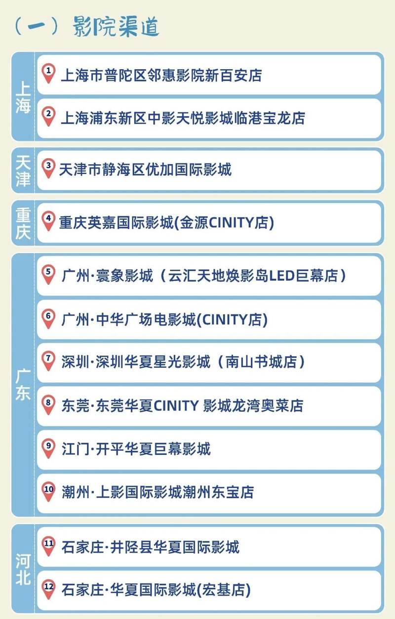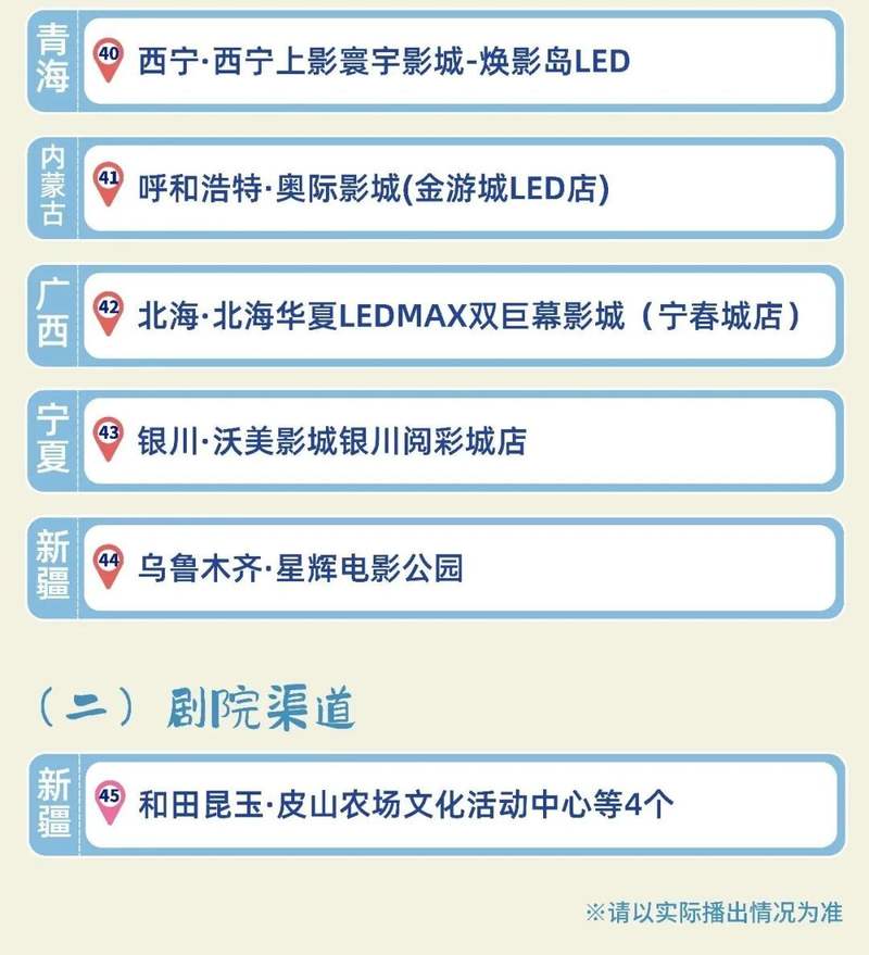 影院、剧院双渠道已开通