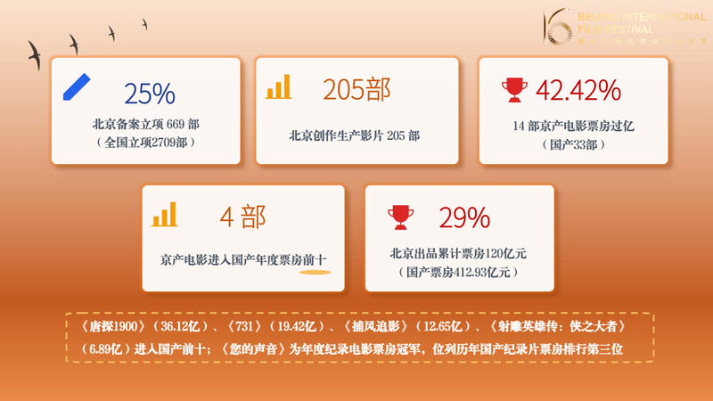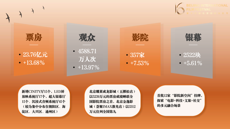 《报告》主编、北京影协副主席、清华大学教授尹鸿发布了北京作为全国电影生产制高点、全国电影市场风向标、全国电影产业中心圈、全国电影科技领先者、全国电影生态示范区的五组关键数据。