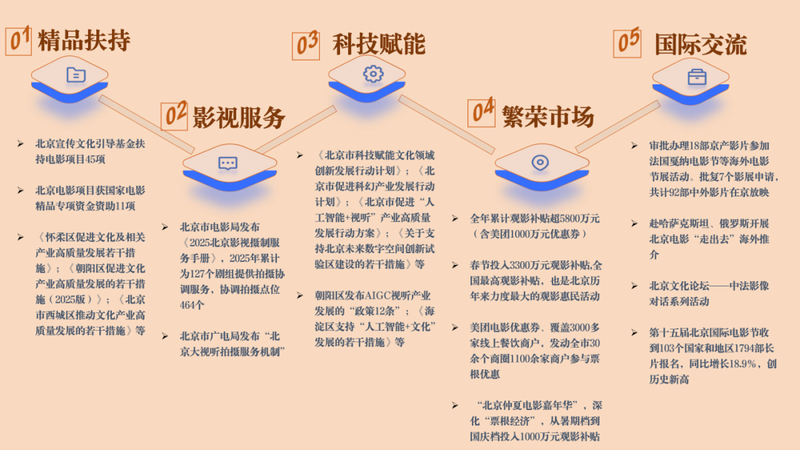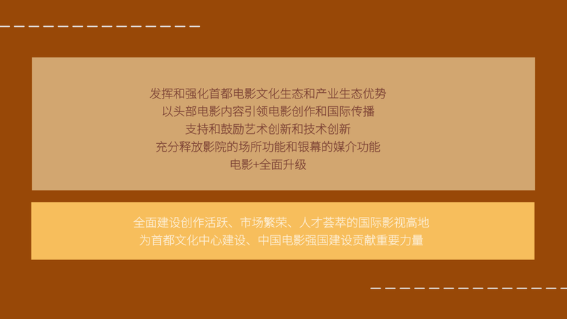 《报告》指出,要发挥和强化首都电影文化生态和产业生态优势,以头部电影内容引领电影创作和国际传播,支持和鼓励艺术创新和技术创新,充分释放影院的场所功能和银幕的媒介功能,“电影+”全面升级。北京电影将全面建设成为创作活跃、市场繁荣、人才荟萃的国际影视高地,为首都文化中心建设、中国电影强国建设贡献重要力量。