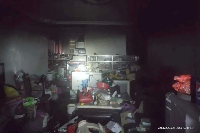 ▲厨房内被老夫妇堆满杂物。图源:泉州消防
